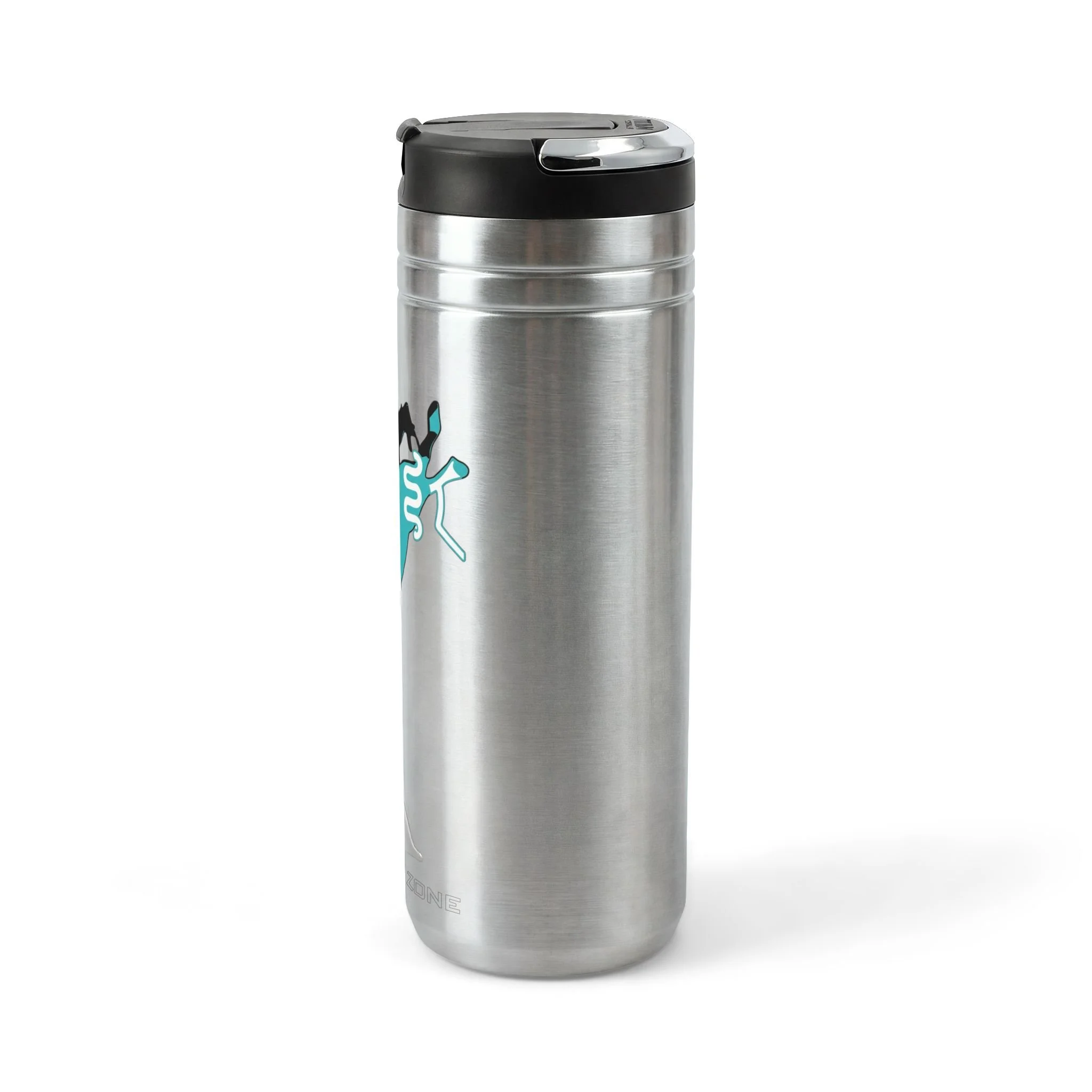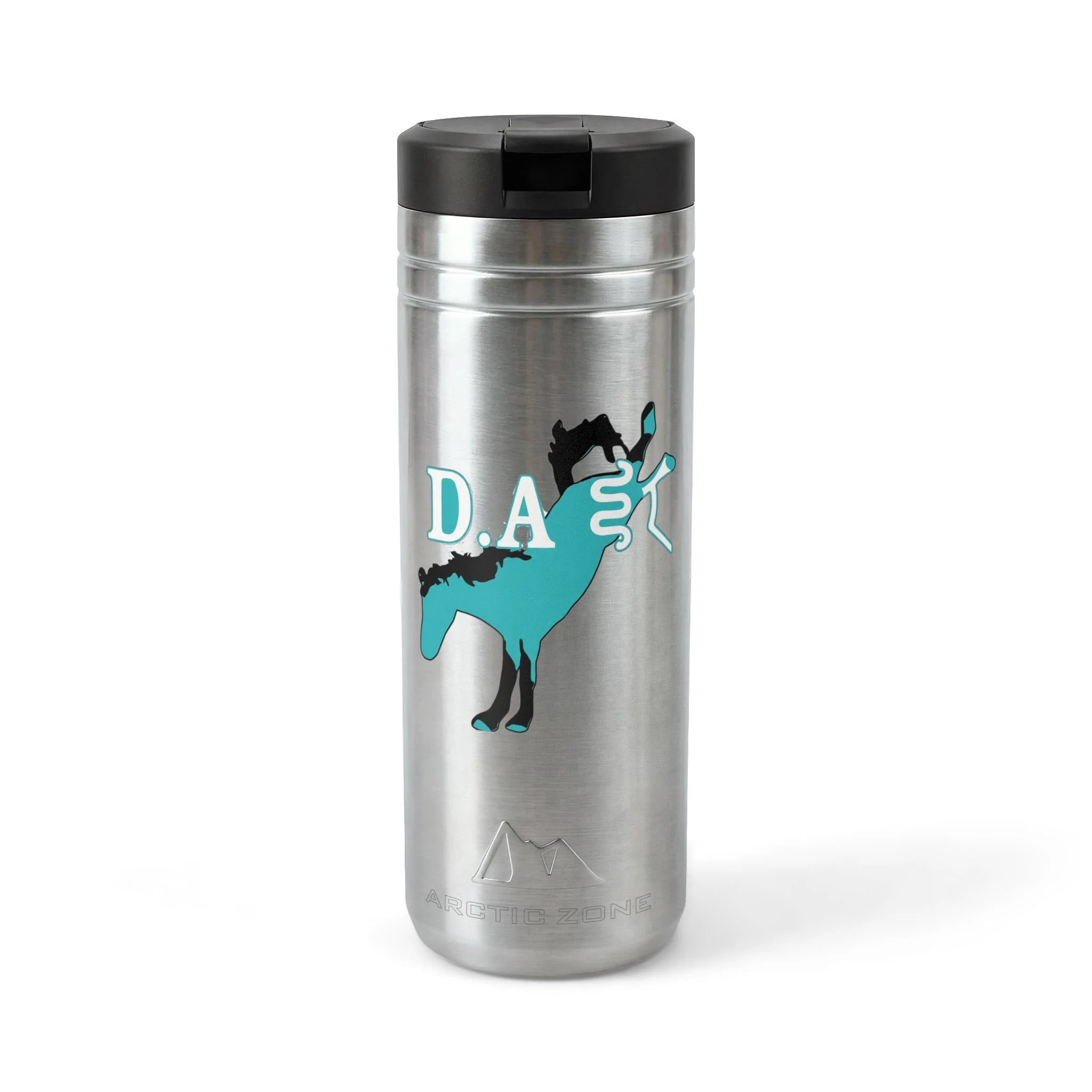 This 24oz thermal straw tumbler blends rugged utility with a touch of playful charm. Built from 18/8 stainless steel and finished with a durable, condensation-free powder coat, it stays cold for up to 24 hours and keeps drinks hot for at least 8. The screw-on lid features a flip-up straw for easy sipping on the move, and the slim 3.07" profile fits most cup holders — great for commuting, long shifts, or outdoor days. The lively turquoise-and-black horse silhouette graphic adds character without overwhelming the clean stainless look. Durable, travel-friendly, and ready for daily use.