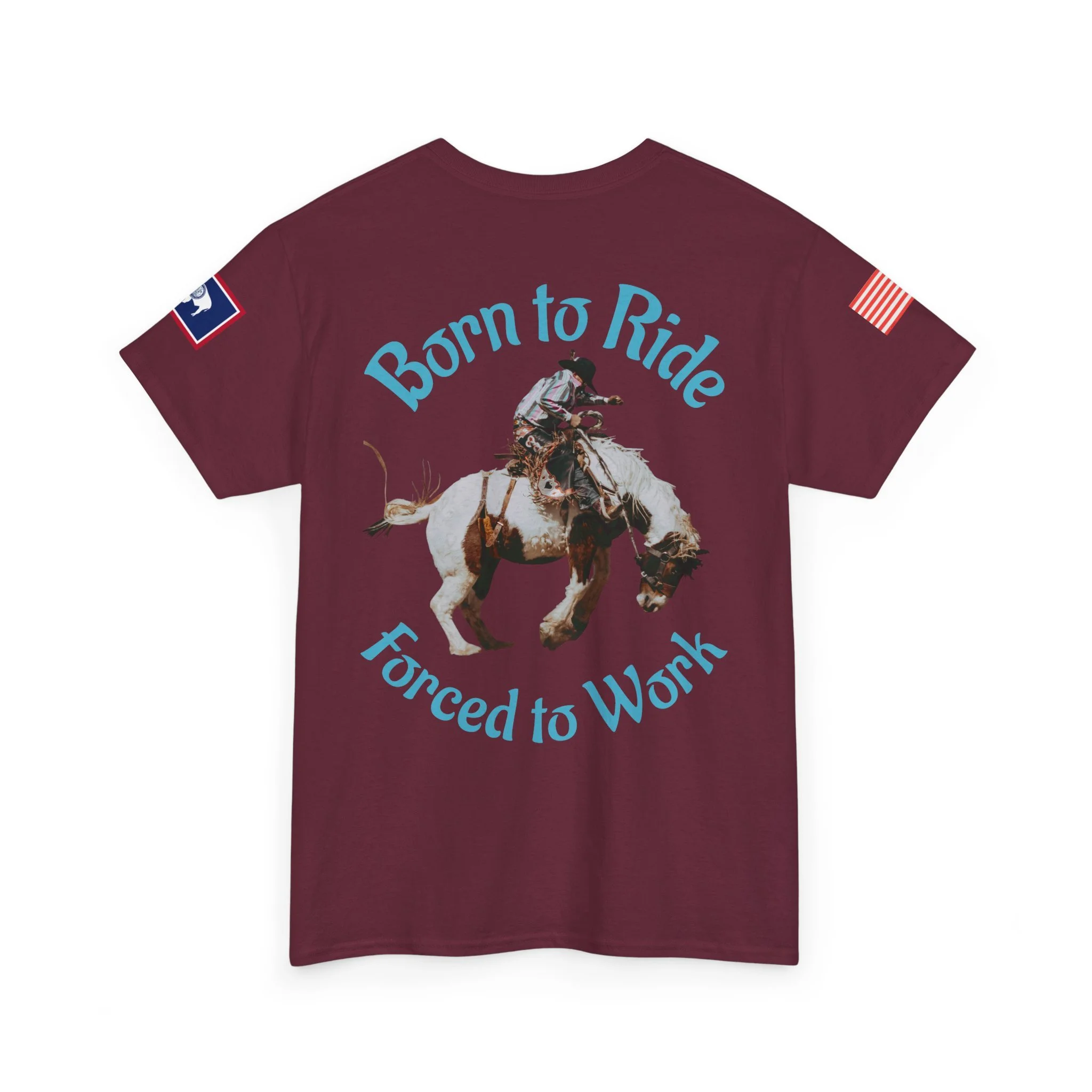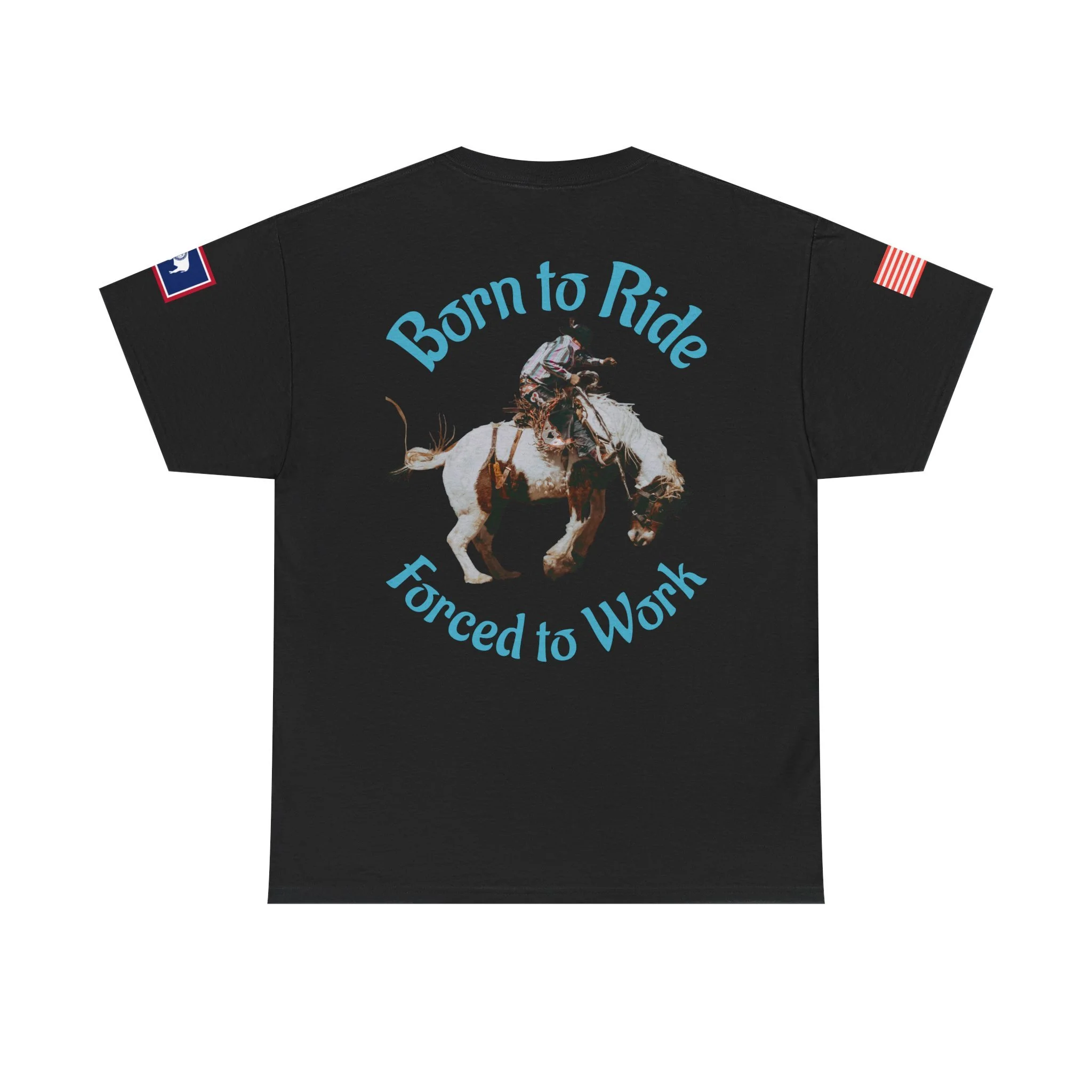 Born to Ride Saddle Bronc Forced to Work Tee Shirt