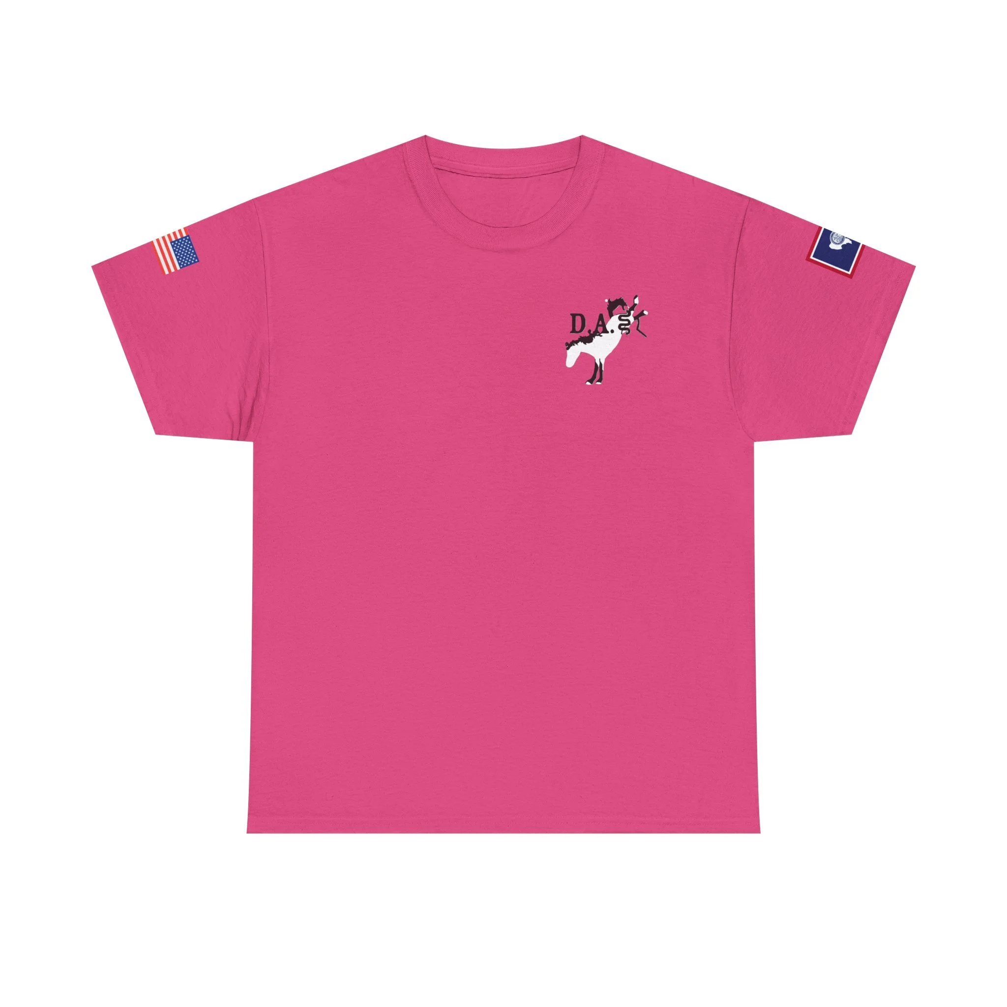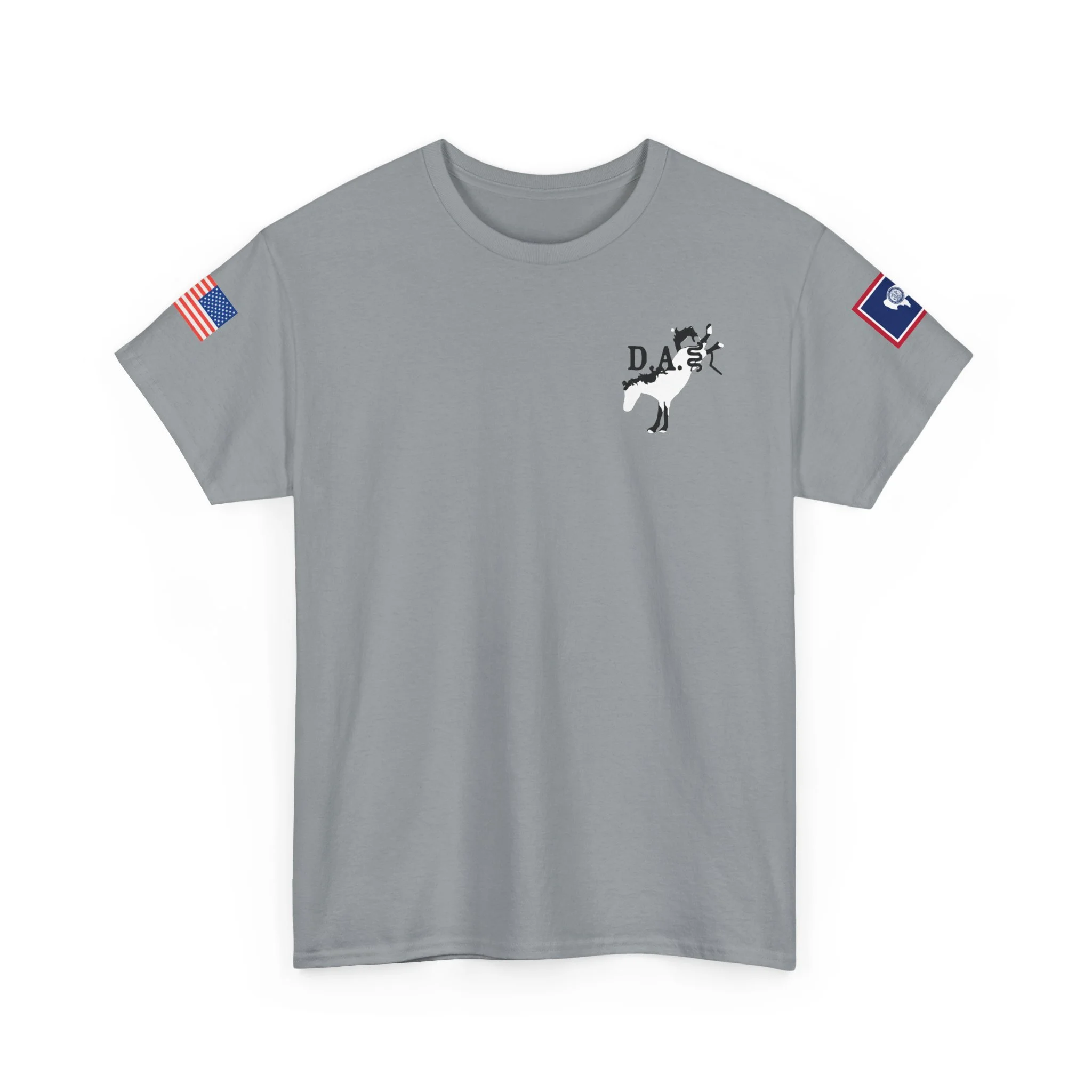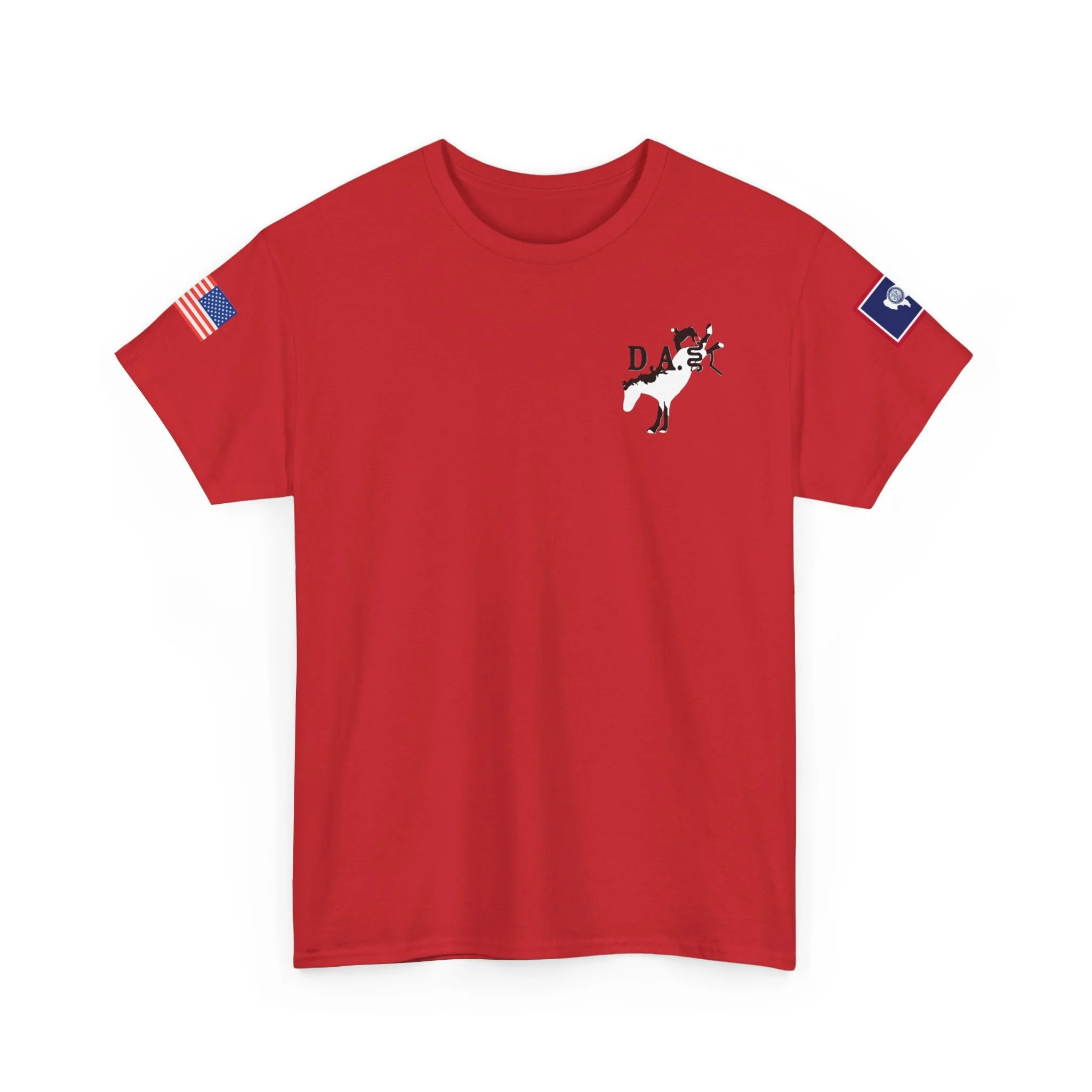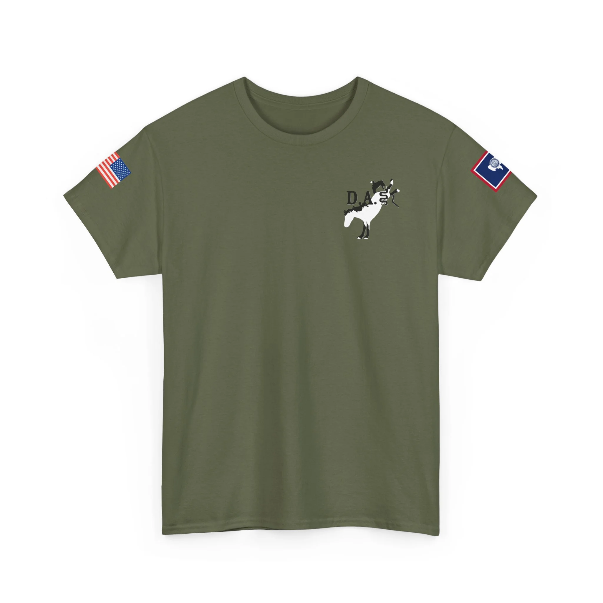 This black cotton tee carries a weathered, western vibe with a wink of rebellious humor. A small, distressed bucking-rider motif sits on the chest while the back shows a bold vintage-style rodeo image and the phrase “Born to Ride / Forced to Work” in faded turquoise. Subtle flag patches on each sleeve and a relaxed classic fit give it lived-in character that works as day-to-day wear or layered under a jacket for a night out. It feels like a staple for someone who loves wide-open roads, weekend rodeos, and a tongue-in-cheek nod to living between passion and responsibility.