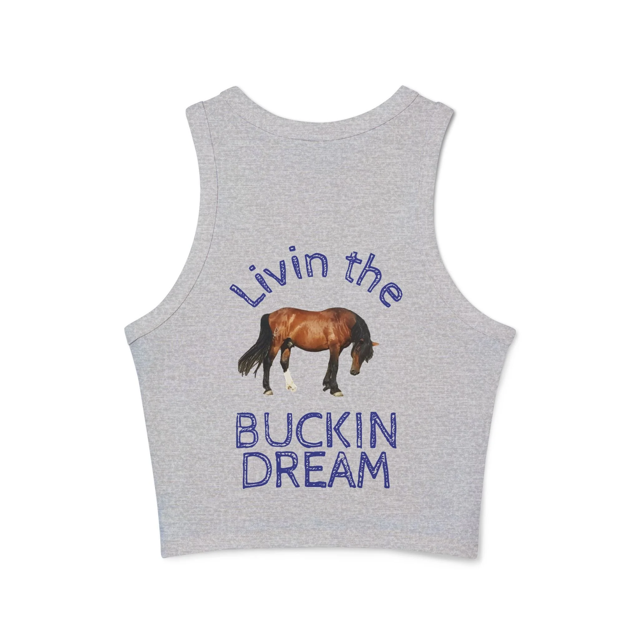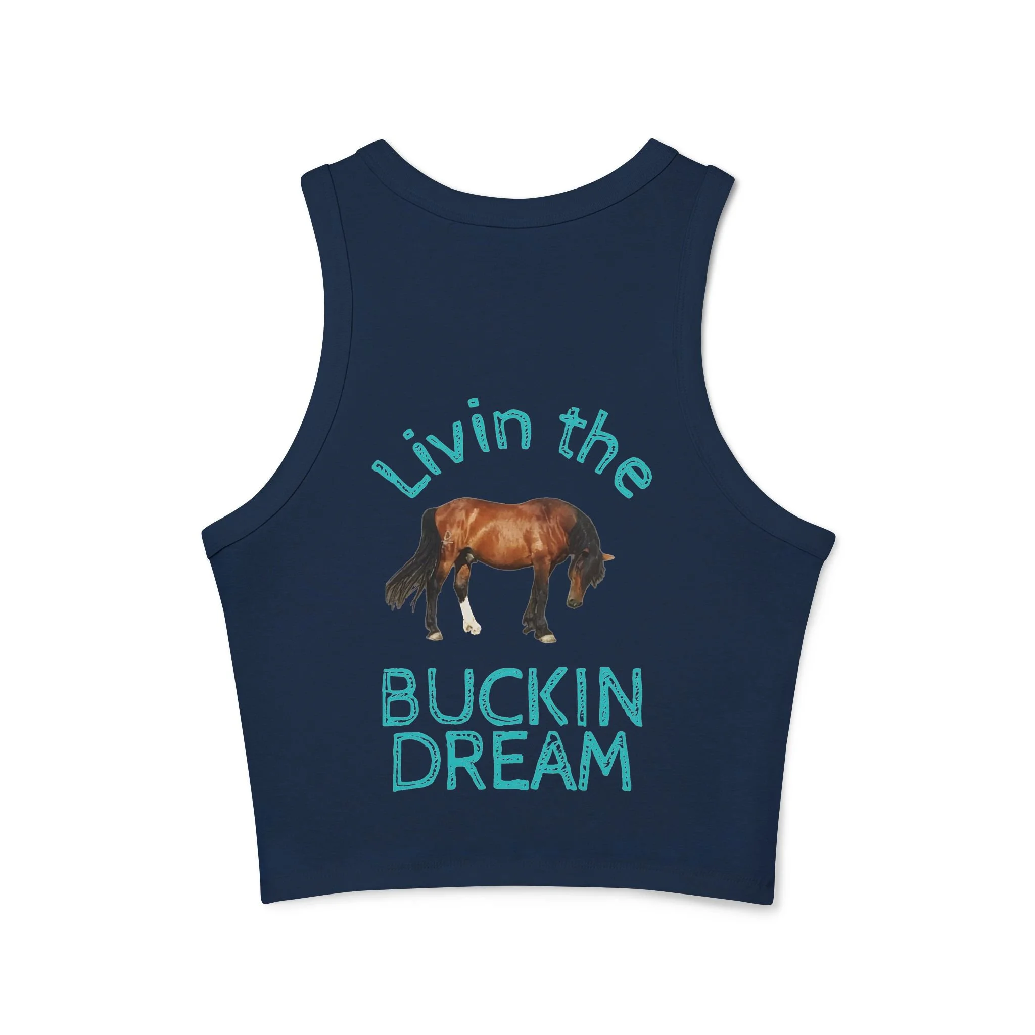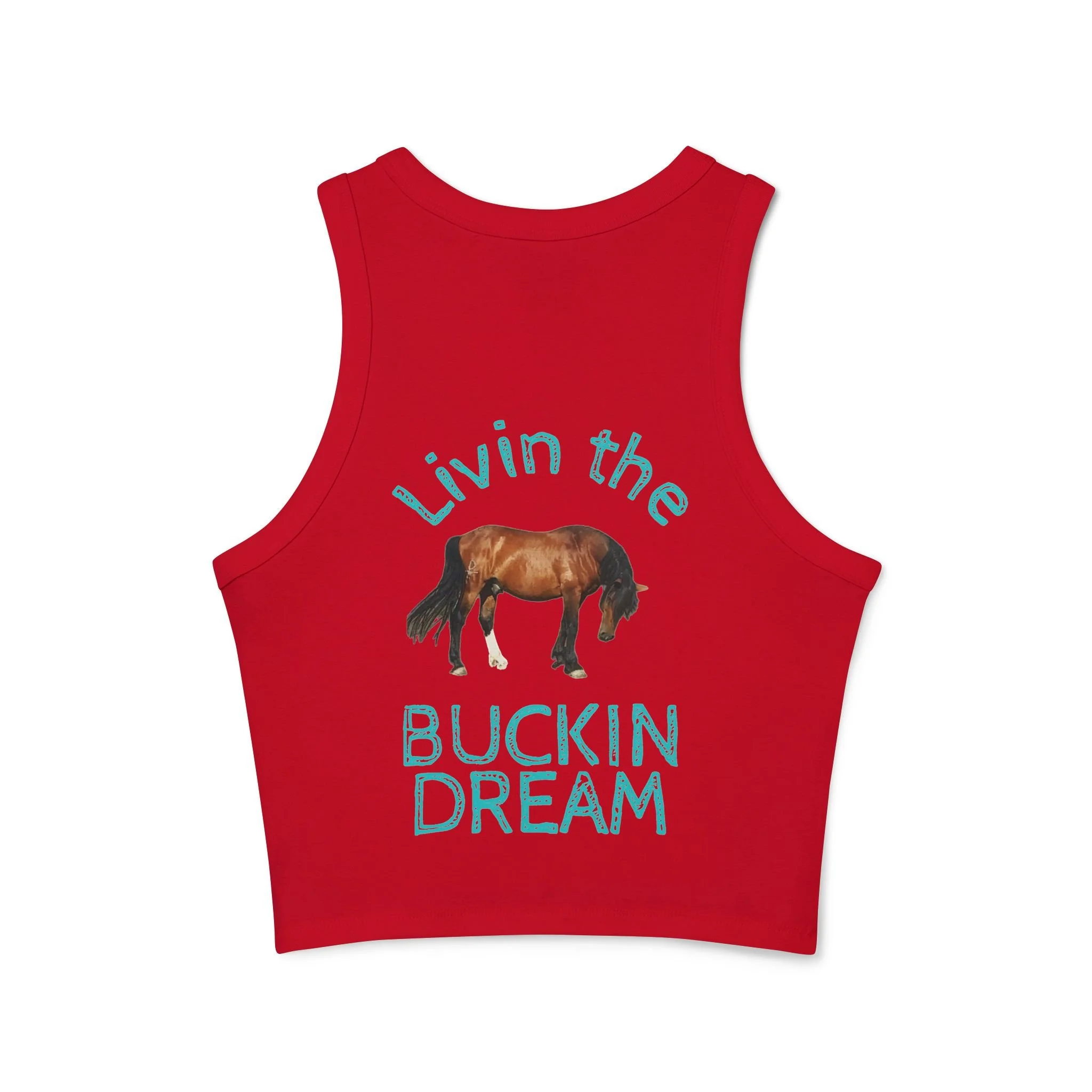 Livin' the Buckin' Dream Tank Top — Women's Racerback Crop with Horse Graphic