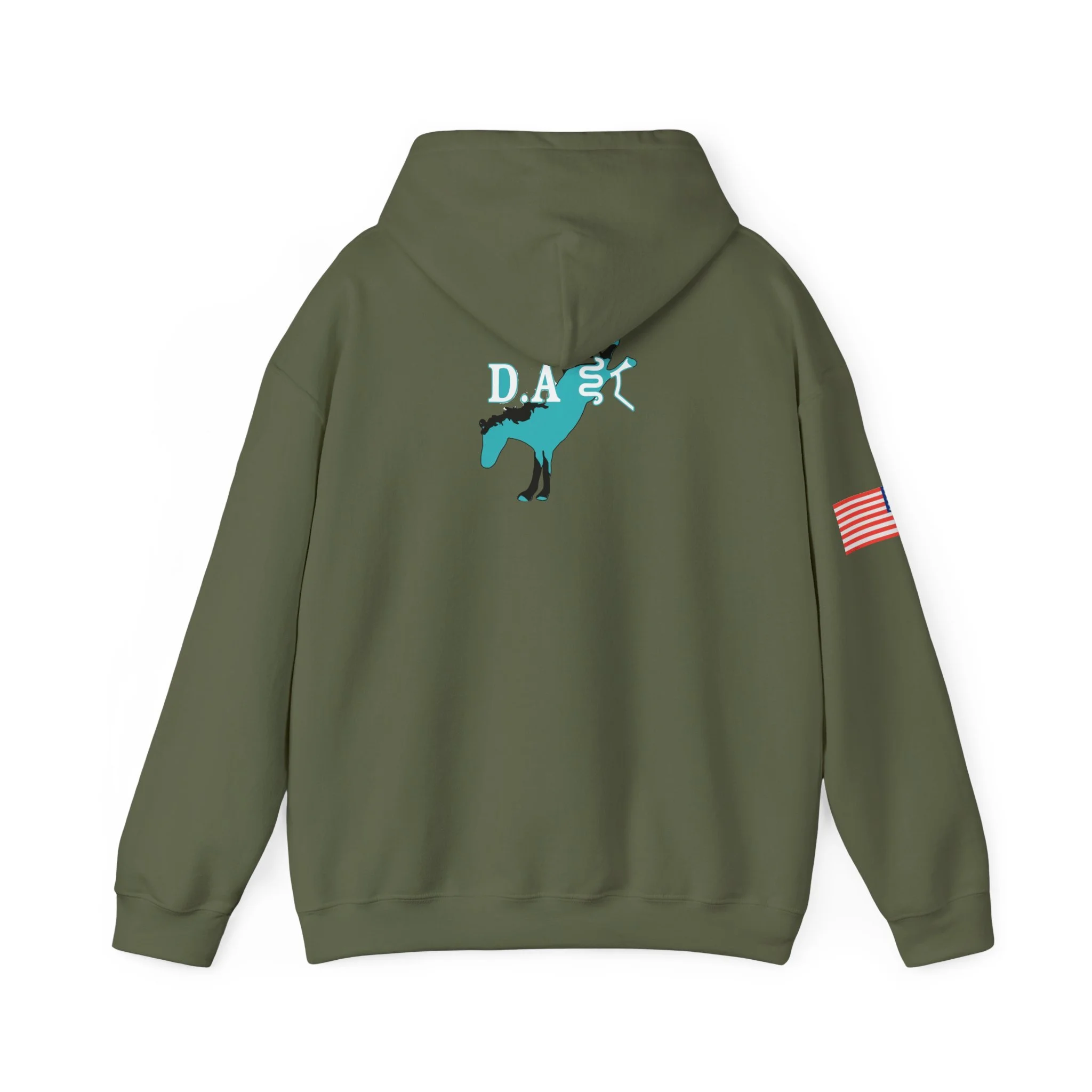 A vintage-inspired hooded sweatshirt with a subdued Americana emblem that marks Memorial Day and the USA’s 250th anniversary. The centered circular badge uses distressed red, navy, and cream tones with a year-stamped ribbon and classic slab-serif text to read as heritage-forward and reflective rather than flashy. Wearable for parades, remembrance gatherings, or casual summer evenings, it pairs with denim and layered looks favored by shoppers seeking nostalgic patriotic style for Memorial Day through national summer holidays.